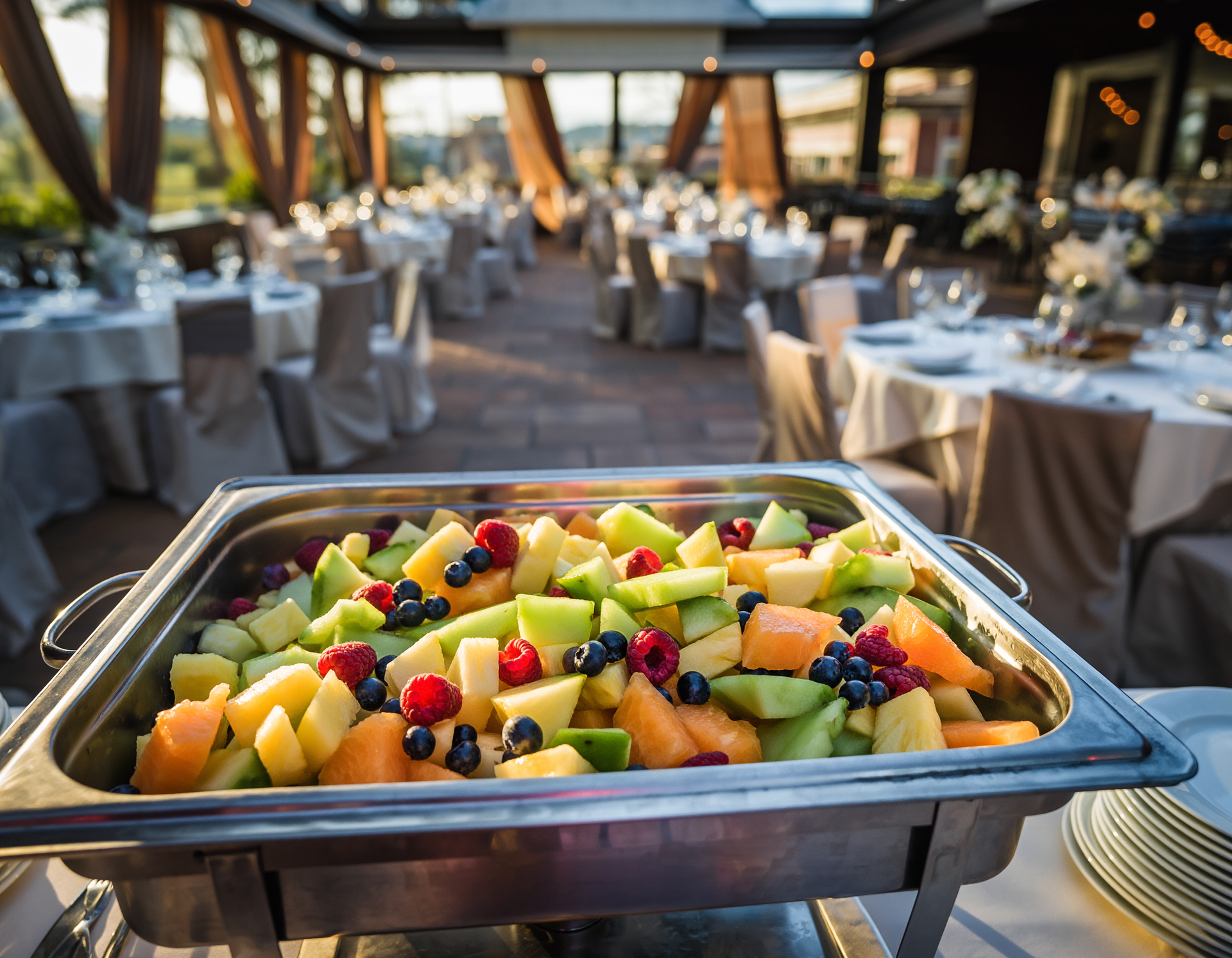 Sliced melons, pineapple and mixed berries.